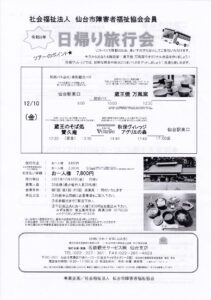 12/10 日帰り旅行会【仙台市障害者福祉協会】