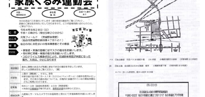 第29回仙台市身体障害者 家族ぐるみ運動会 とき:令和4年8月28日...