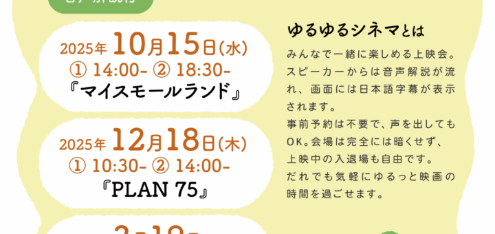 ゆるゆるシネマ / 12月「PLAN75」 入場無料・予約不要 「P...